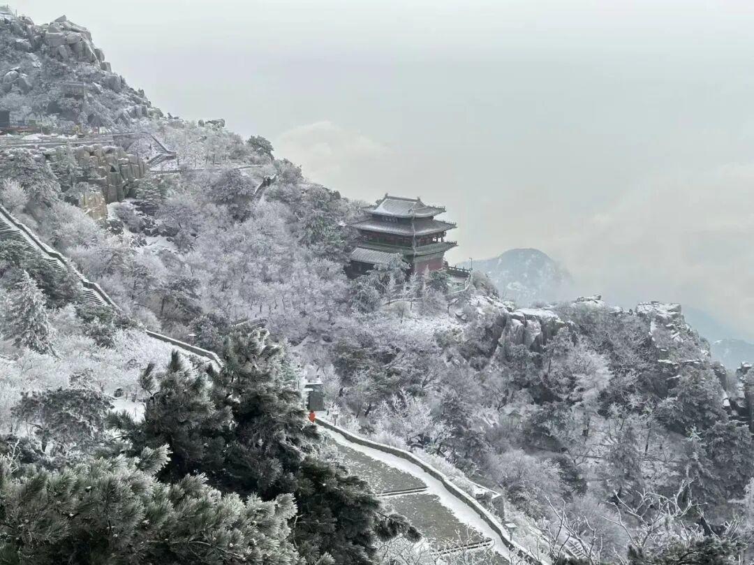泰山5条登山清亮收复绽放,雪后好意思景等你来赏→